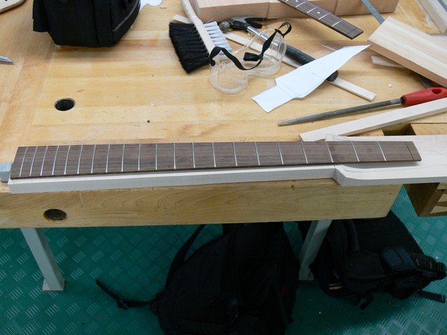 Otelaudan tarkka paikka. Nyt se myös katkaistaan oikeasta kohdasta, jotta skaalaksi saadaan 28 tuumaa.